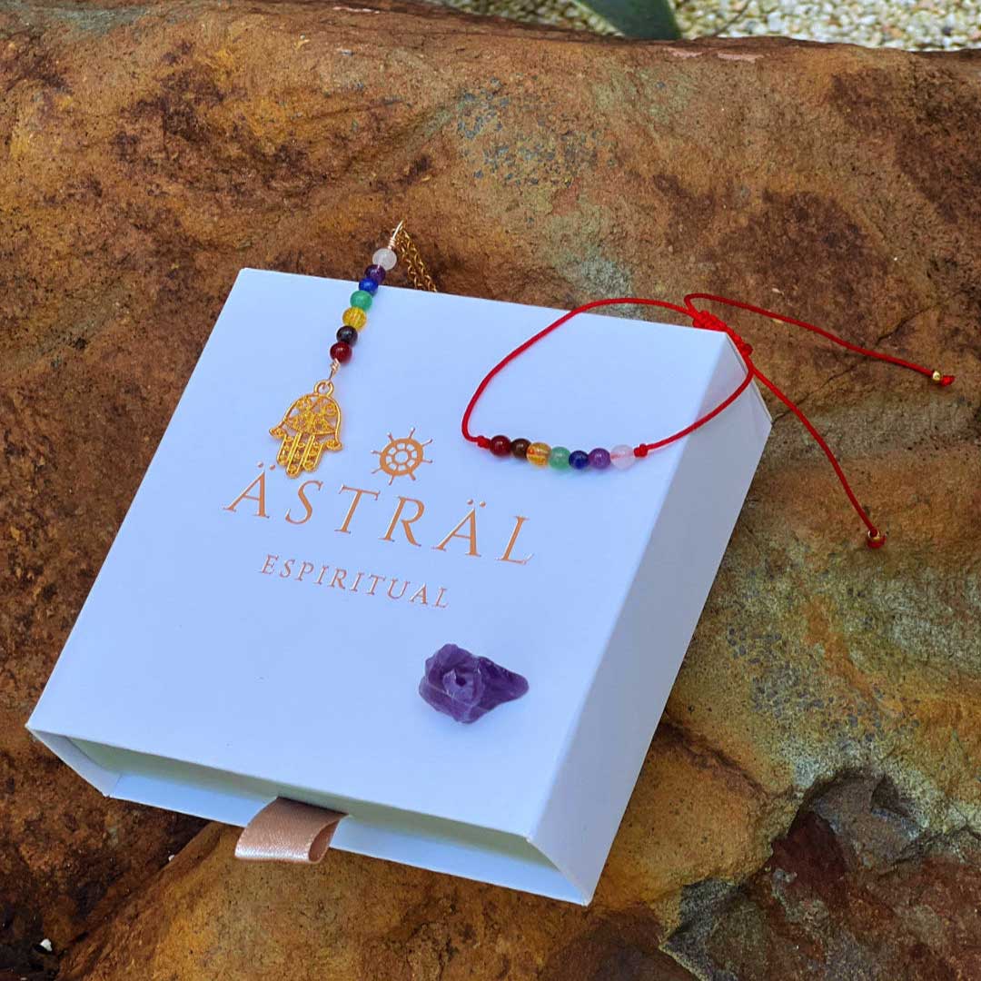 ¡Enciende tu energía y siente la protección con nuestra cajita sorpresa energética! Contiene un talismán de los 7 chakras, un brazalete protector y una amatista para cargar siempre. Experimenta energía y protección interior con este kit sorpresa. ¡Hazlo ahora!