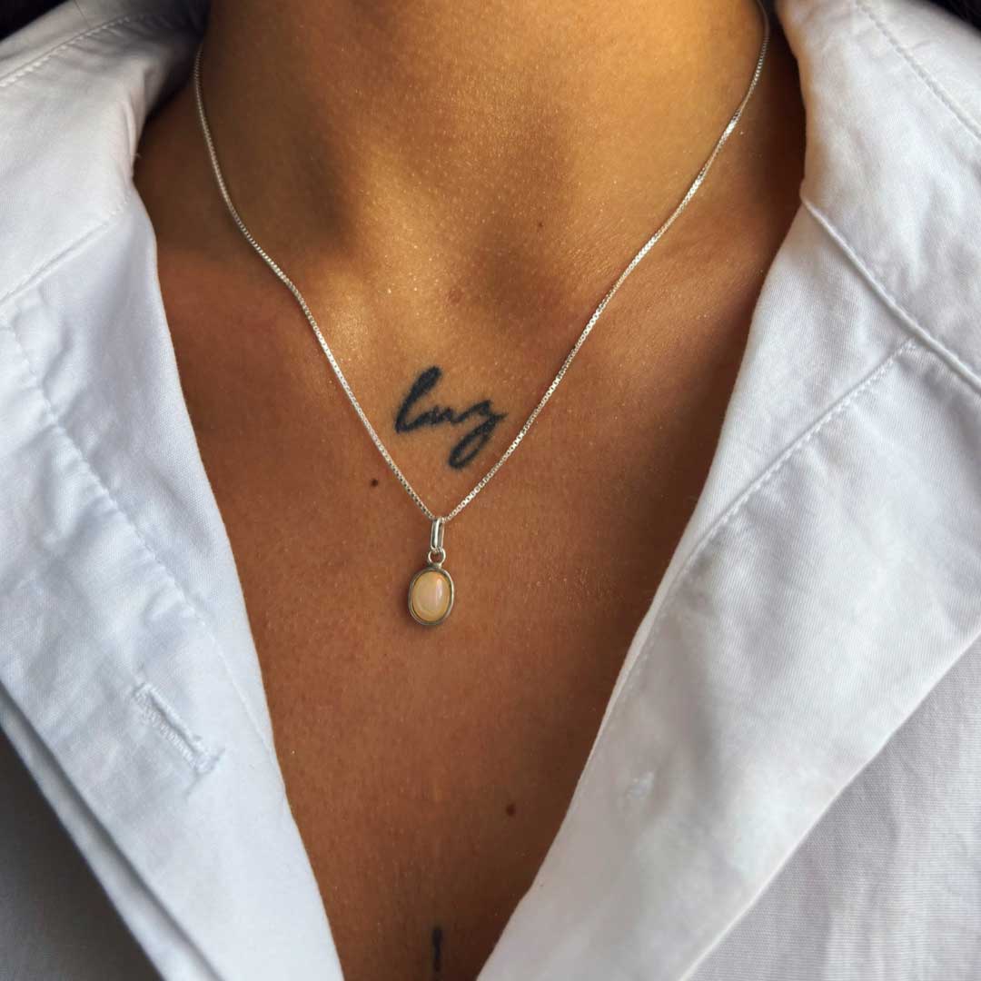 ¡Protege tu energía con nuestro Talismán Ópalo en plata ley 925! Hecho con Ópalo, una poderosa piedra natural que calma la ansiedad y el estrés, y equilibra tu ser interior. Dale a tu cuerpo el cuidado que necesita con este hermoso collar de plata.