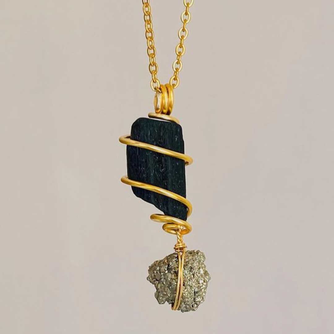 Canalizar energía en tu talismán a través de la turmalina negra y la pirita te aportan a nivel energético protección de tus vibraciones energéticas y tus frecuencias interiores a través de la pirita fluyen a través de la energía de abundancia y riqueza interior.